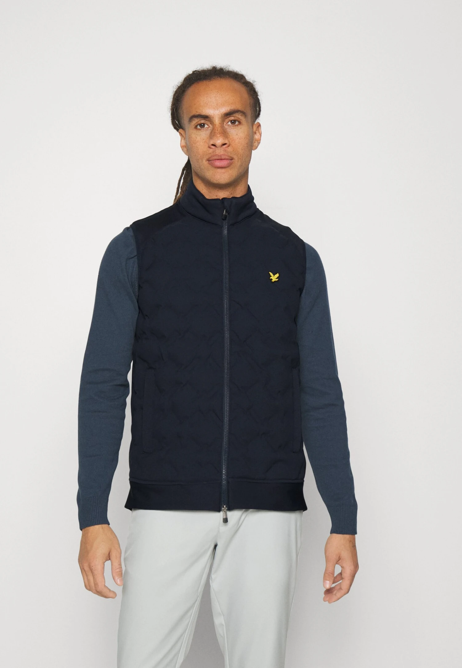 Lyle & Scott Check Quilt Back Fleece Gilet – Softshelljas – Dark Navy